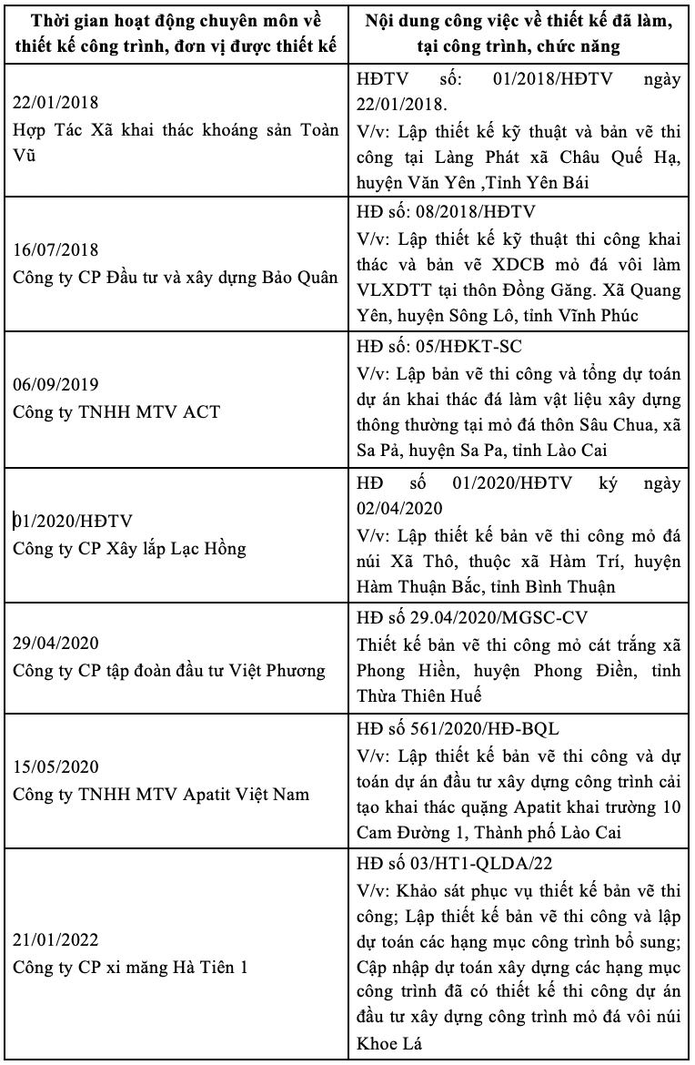 DANH SÁCH MỘT SỐ CÔNG TRÌNH THIẾT KẾ KỸ THUẬT THI CÔNG